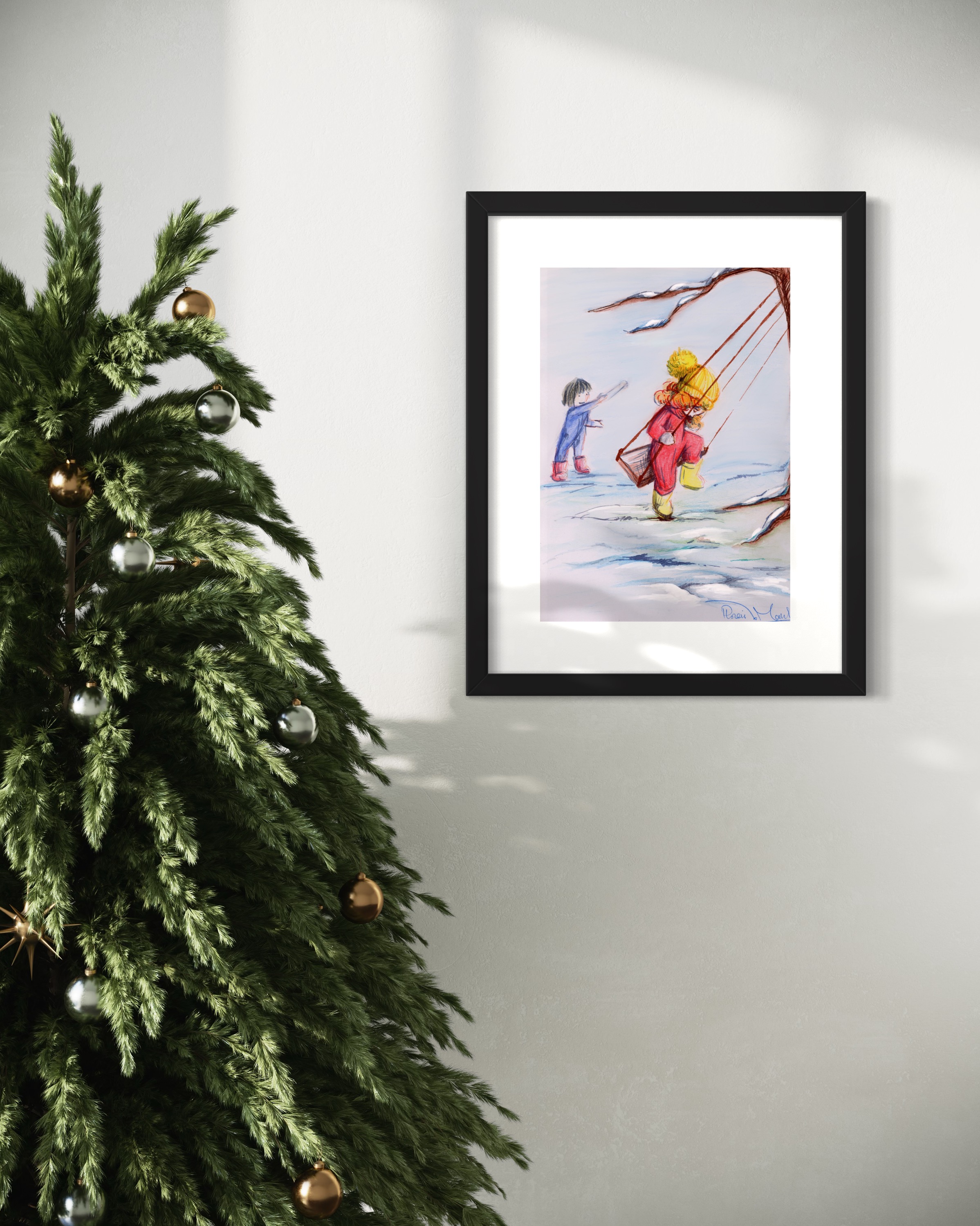 Snow, Children Room Decor, Kids Room Decor, Narrative Art, Comic Book, Christmas, Painting,Wave.