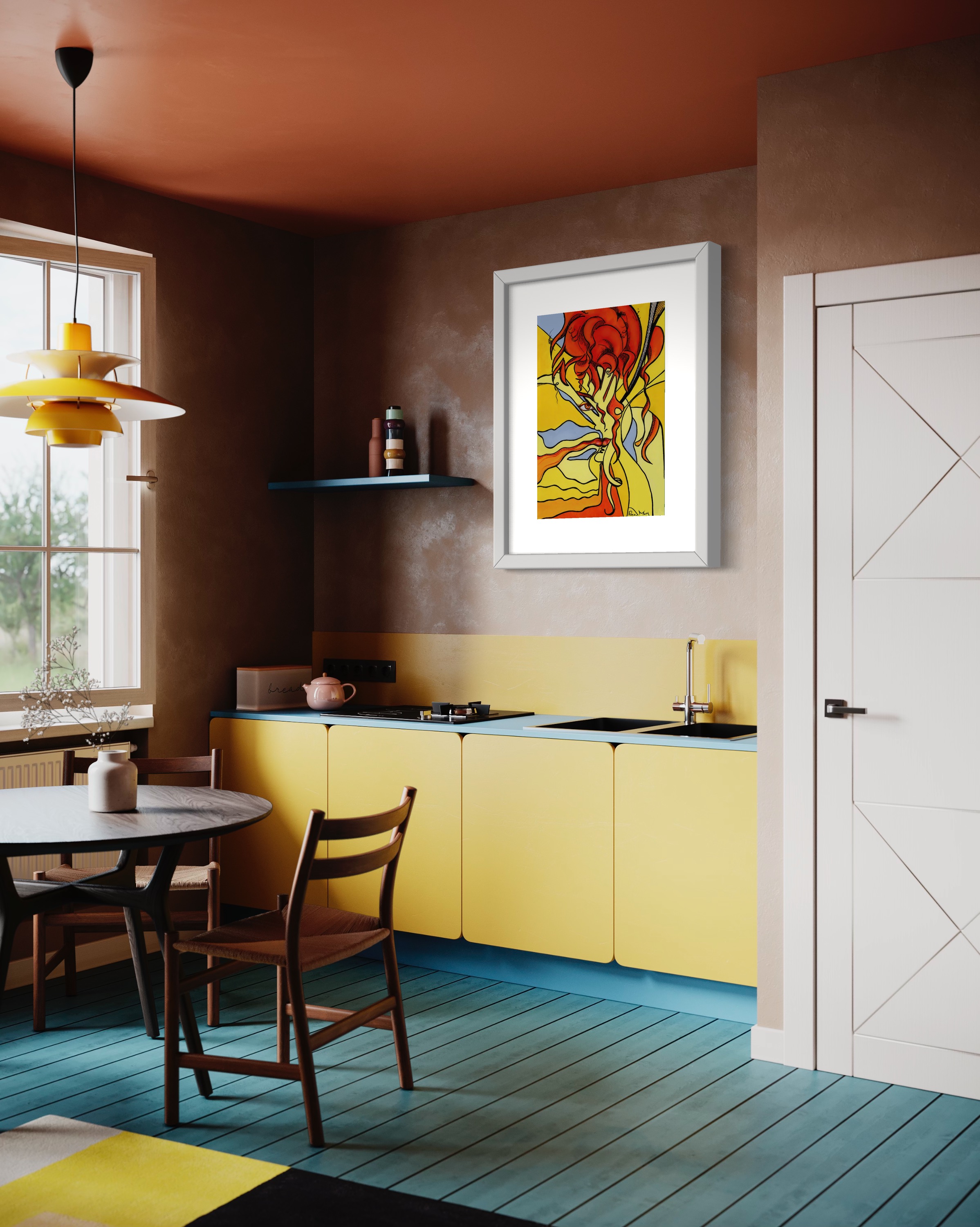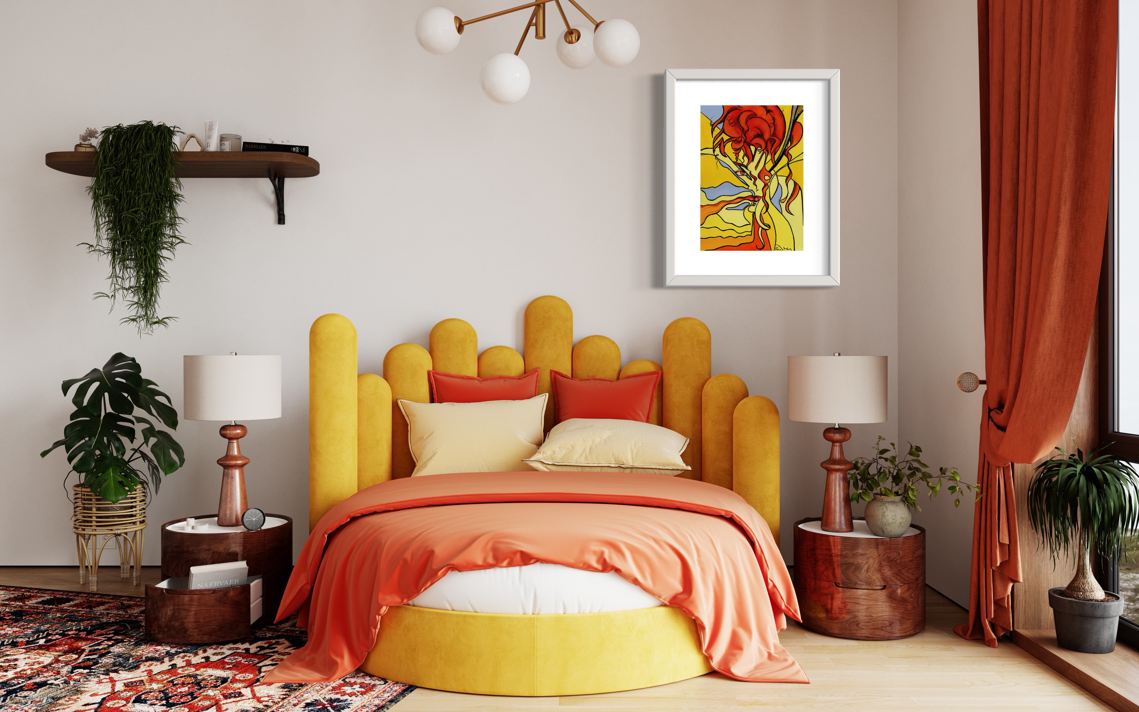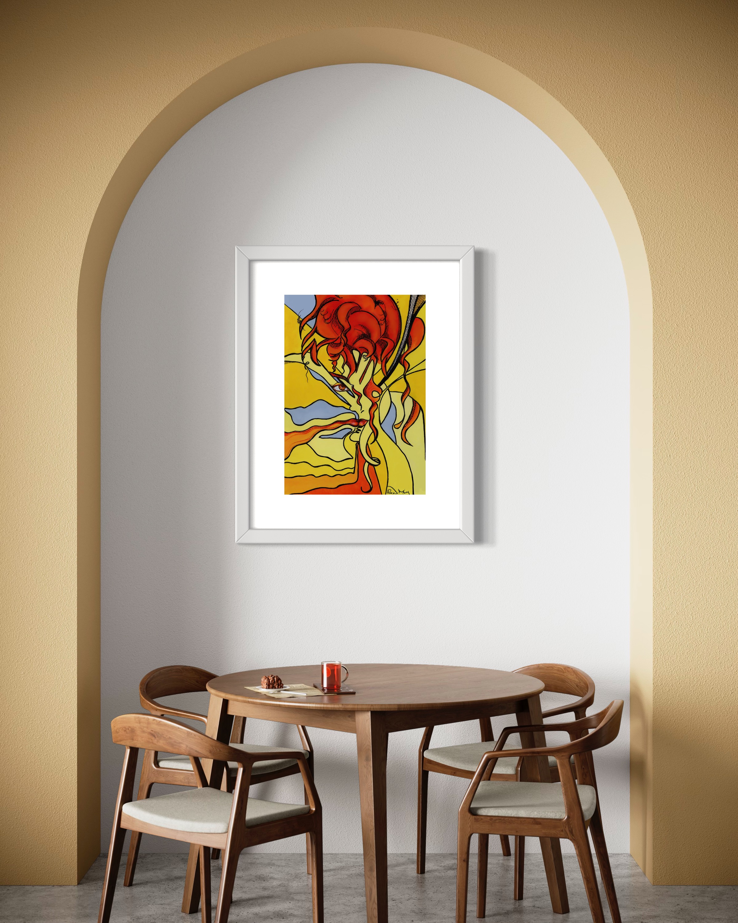 The Sun, Yellow, Woman, colourful, Bright, Red, Orange, Painting,Wave.