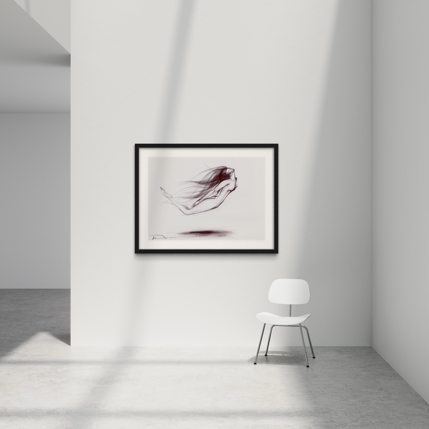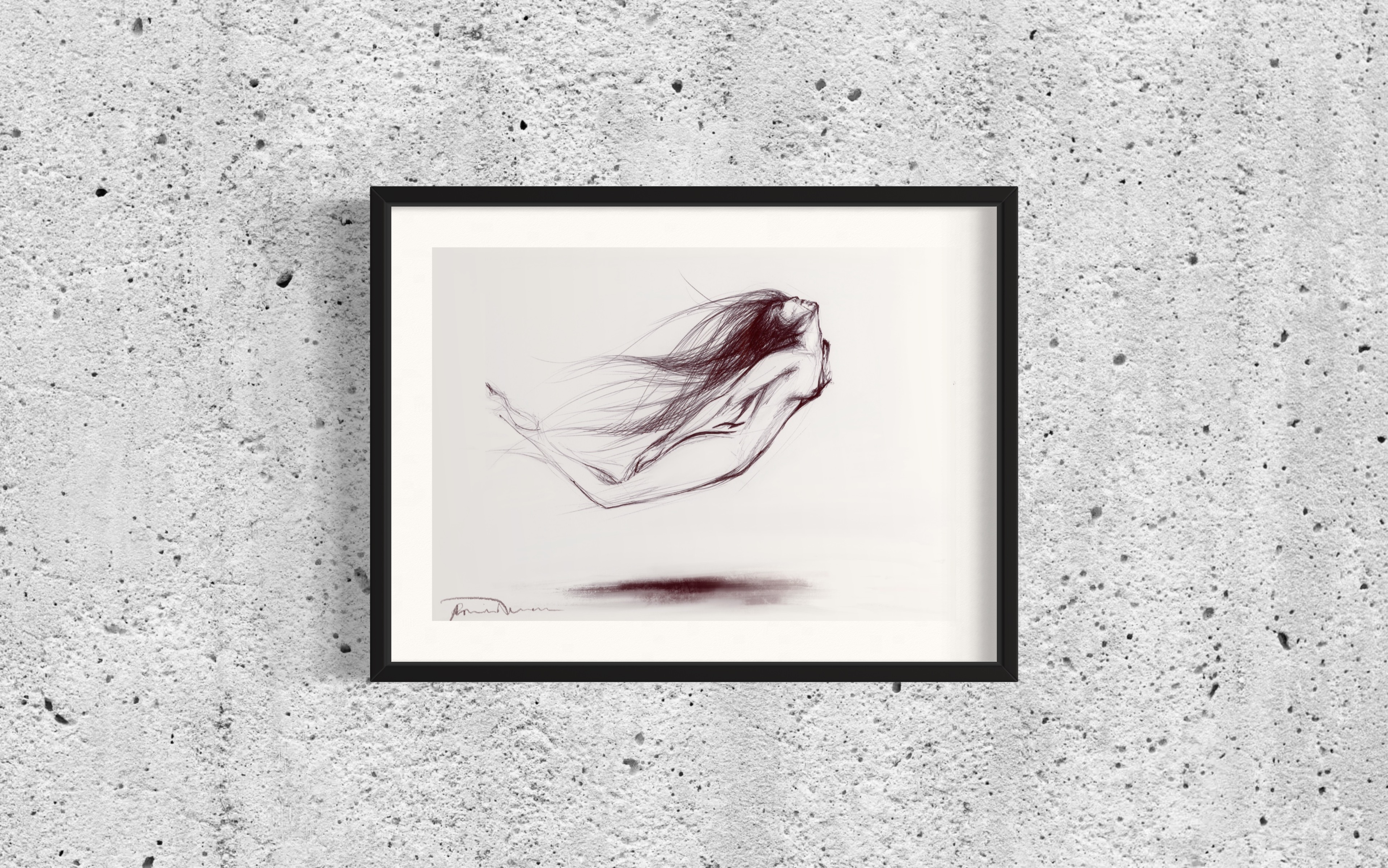 Black and White, Fantasy, Dreamer, Horizontal, Surreal, Floating Woman, Long Hair, Naked Woman, Painting,Wave.